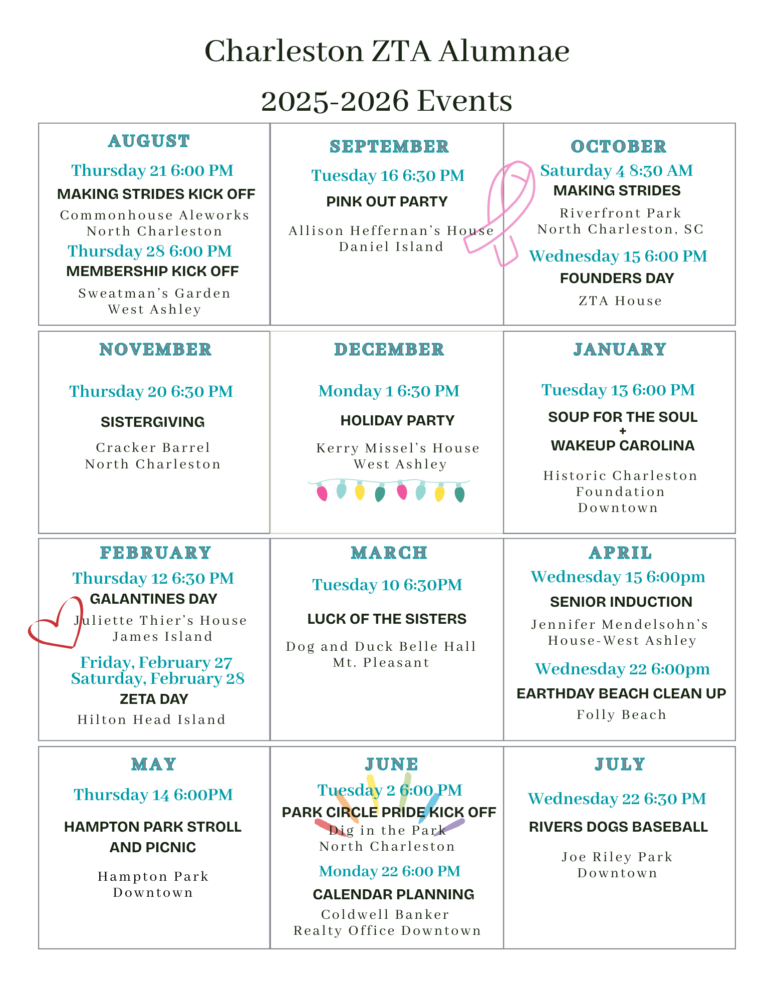 Event details are sent to your inbox via our monthly newsletter and Evite.